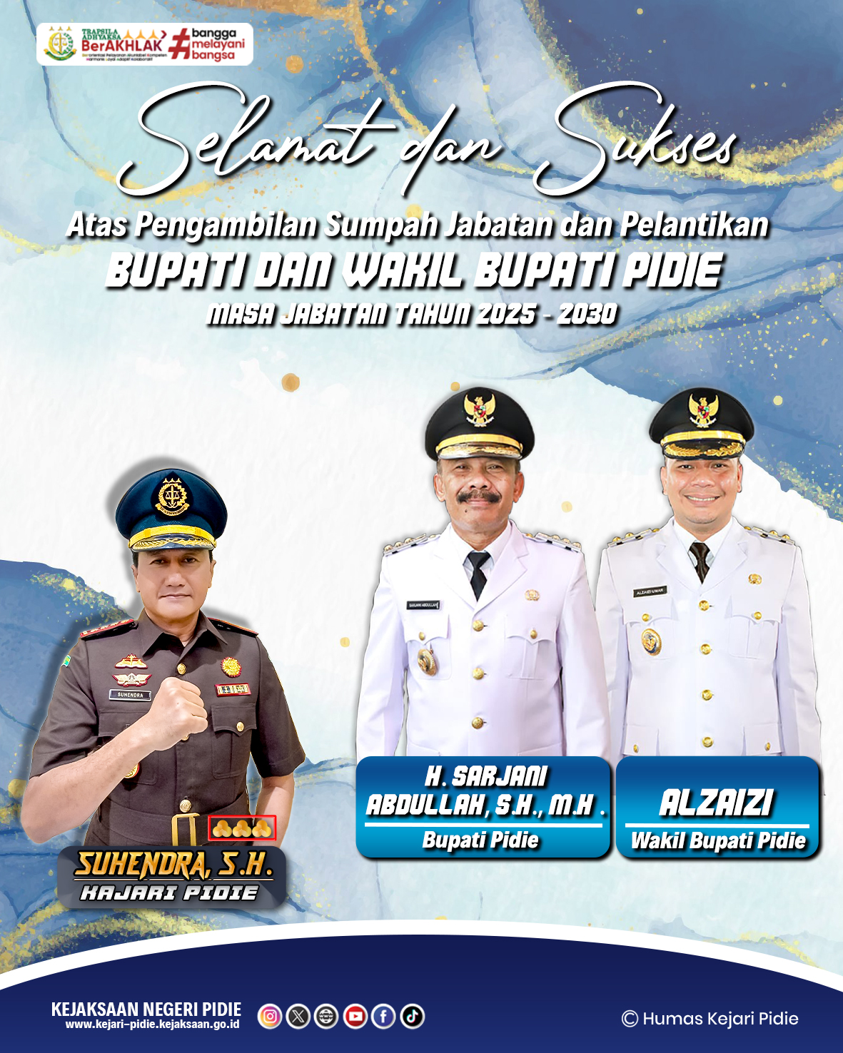 Kejari Pidie Ucapkan Selamat atas Pelantikan Bupati dan Wakil Bupati Pidie 2025-2030